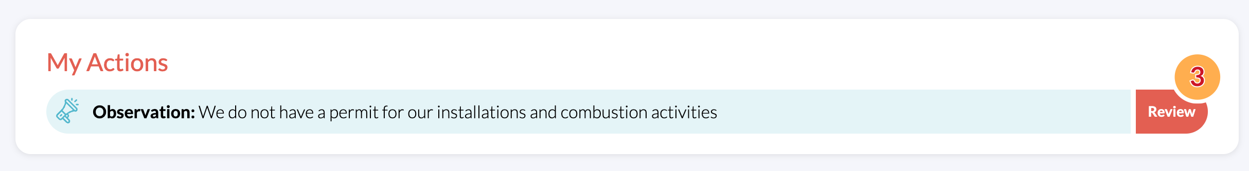 The Action can be viewed and responded to by clicking on the red button (2) for Site Controllers, or by clicking Review (3) under My Actions, if the action has been assigned to you.
